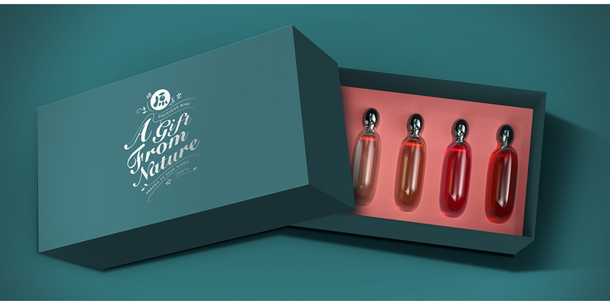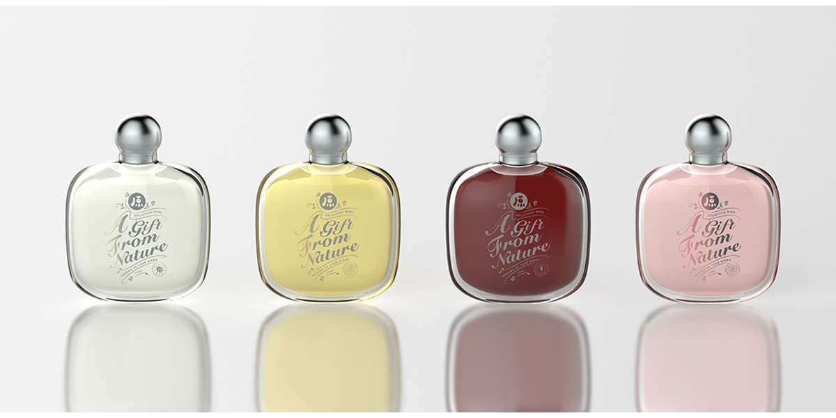 整體包裝設(shè)計,以果酒所對應(yīng)的水果插畫,為背景,表達果酒原料取之于自然,新鮮健康。整體為輕奢暗紋,花體英文古典優(yōu)雅。藝術(shù)性較強的英文花體為視覺焦點,突出品牌slogan-大自然的禮物。品牌logo及簡要產(chǎn)品信息,更易于讓消費者快速了解產(chǎn)品。