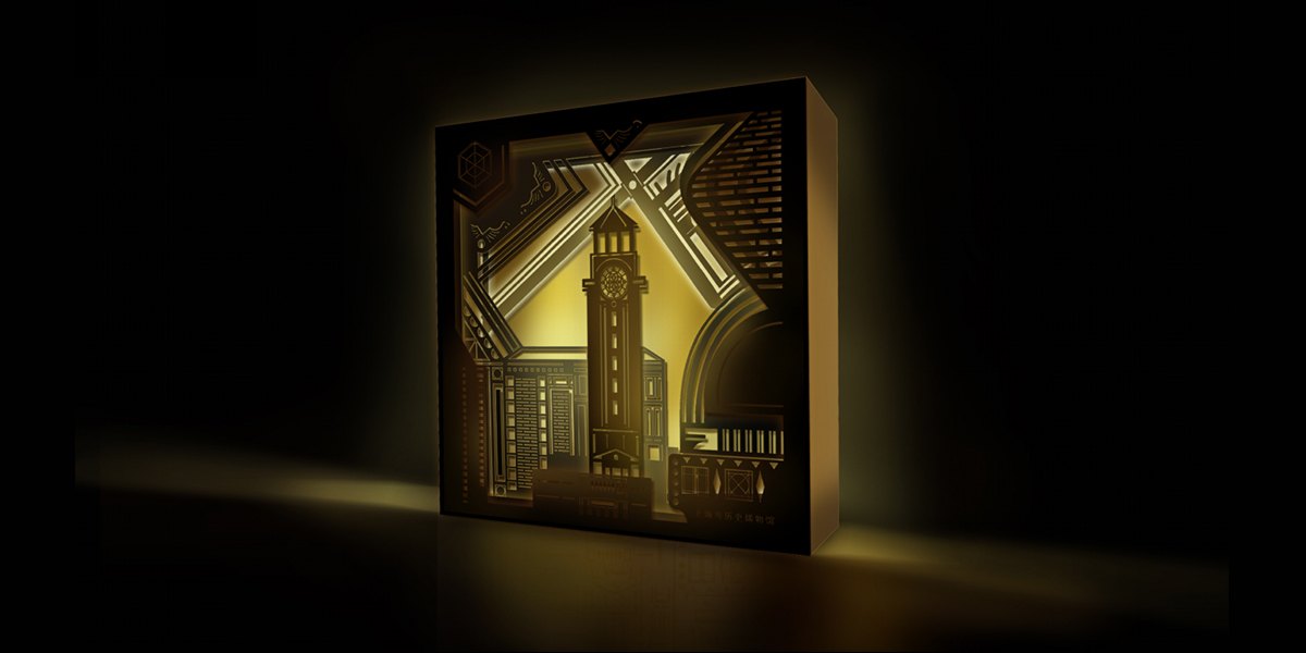 為了能夠展現(xiàn)歷博新樓的一角風(fēng)貌,木馬設(shè)計(jì)師在設(shè)計(jì)過(guò)程中保留跑馬廳建筑線條、凝重的建筑色彩和獨(dú)特的建筑風(fēng)格,將整體繁復(fù)的造型進(jìn)行簡(jiǎn)化,利用解析重構(gòu)的手法,將跑馬總會(huì)大樓分割重組以裝飾畫(huà)的形式呈現(xiàn),配以燈光,形成美輪美奐的光影紙雕燈。