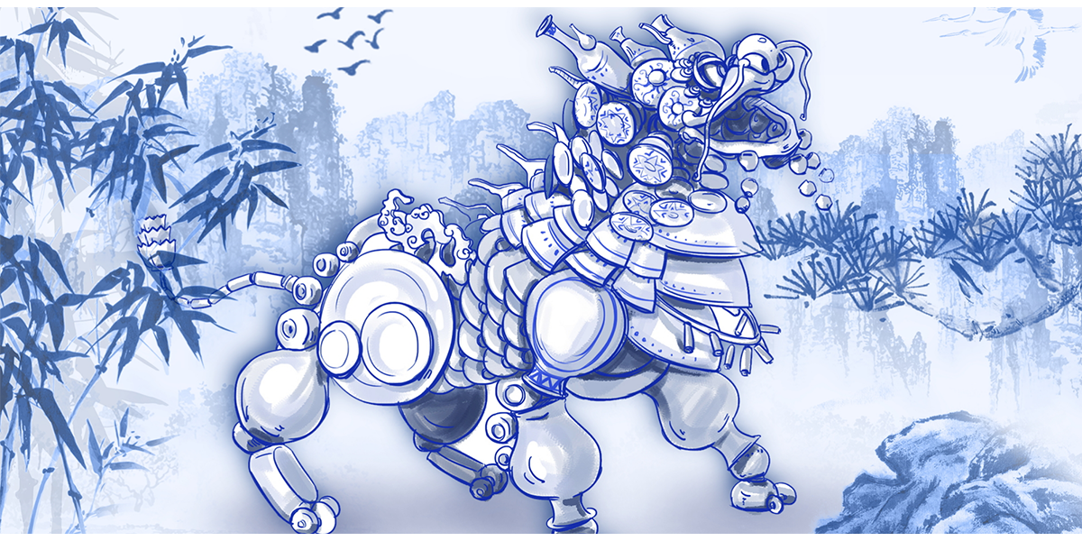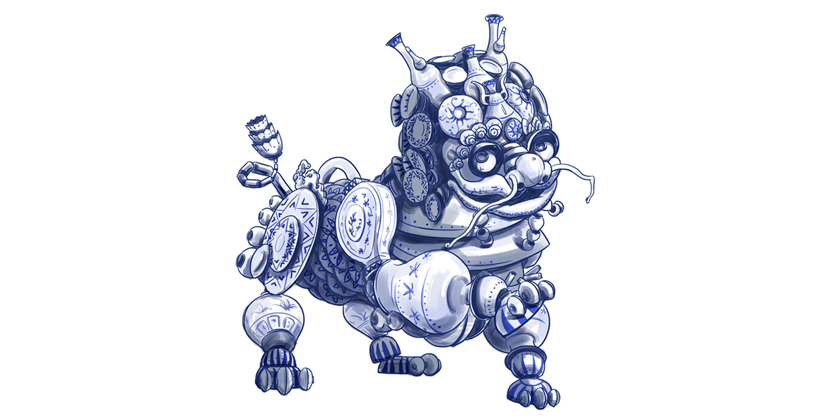 傳說(shuō)中,在瓷世界里,一切生機(jī)盎然,在生態(tài)圈的頂端,有一個(gè)精靈和五個(gè)瓷瑞獸,瑞獸們守護(hù)在一條“瓷河”沿岸。HUA是一只由著名青花瓷構(gòu)成的瓷世界瑞獸。他活力、動(dòng)感、單純、自信、一身正氣。