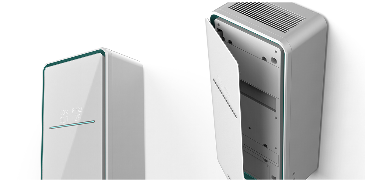 經(jīng)過細致深入的市場調(diào)研確定了兒童家庭在空氣凈化問題方面所存在的痛點。更對市場相關(guān)產(chǎn)品進行深入了解,作為一款需要長期固定在墻壁上的凈化產(chǎn)品,其設(shè)計和家裝風(fēng)格的匹配尤為重要,其方正的造型、圓潤的機身給人穩(wěn)重的感覺,純白色鋼化玻璃面板能契合家庭的裝修風(fēng)格。