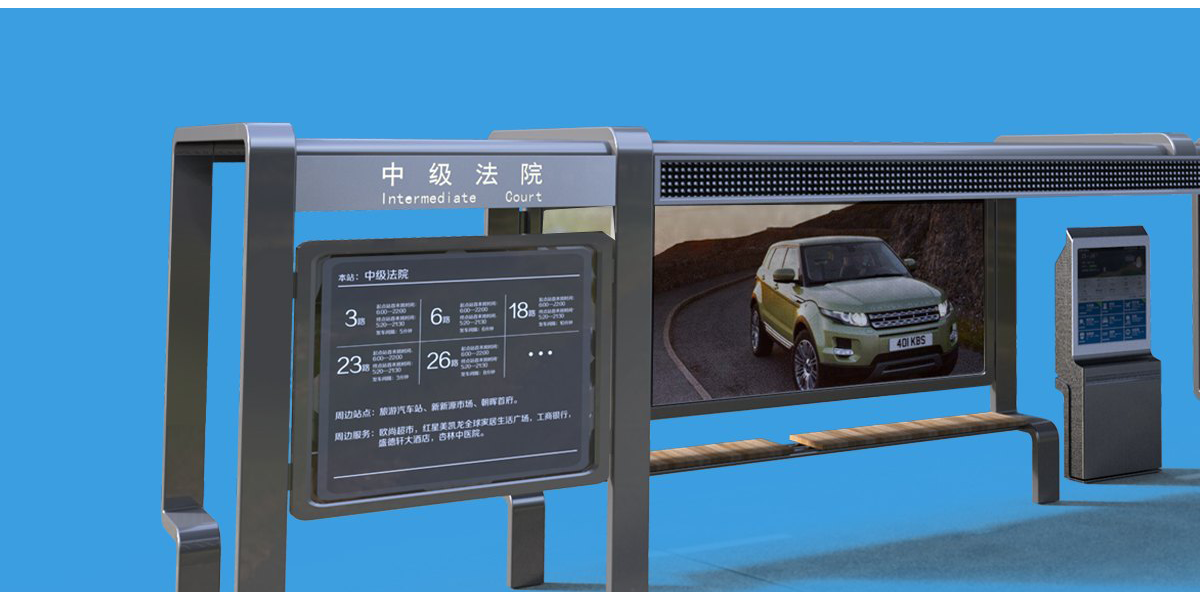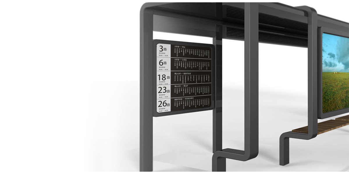 城市的公交車站是城市交通實現(xiàn)智能化最具代表性的基礎(chǔ)設(shè)施,通過對智能公交車站的設(shè)計,既保證了智能公交車站改善出行效率的功能需求,也提高了外觀視覺的審美感受,配合簡潔的直線與幾何語言元素,實現(xiàn)公交車站功能與造型的完美結(jié)合,使產(chǎn)品自然融入城市環(huán)境氛圍。