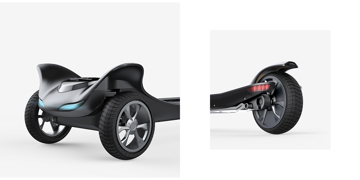 該產(chǎn)品的設(shè)計(jì)顛覆了傳統(tǒng)滑板千篇一律的古板設(shè)計(jì),將龍的形象融入產(chǎn)品中,線條流暢富有動(dòng)感,前后車燈與滑板融為一體,能夠?qū)崟r(shí)顯示電路與速度,操作簡(jiǎn)單,彰顯個(gè)性。 將文化形象融入產(chǎn)品中,在保證精良的產(chǎn)品品質(zhì)的同時(shí),承載文化的內(nèi)涵。