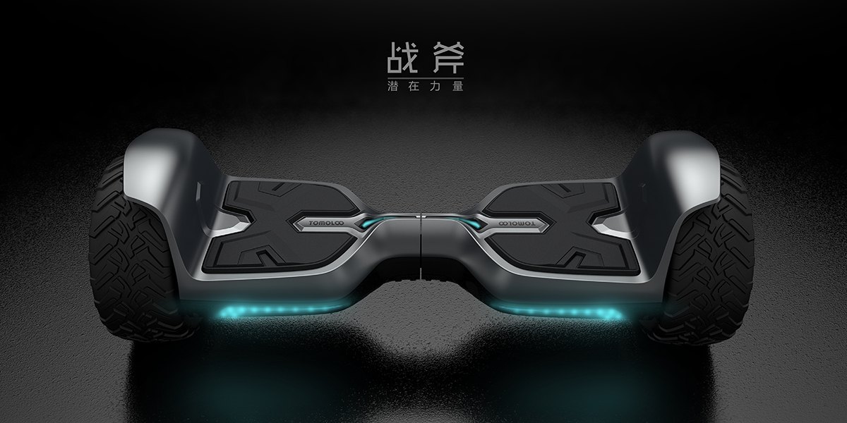 產(chǎn)品的外觀形態(tài)以北歐雙刃戰(zhàn)斧作為設(shè)計(jì)元素,象征著力量與權(quán)威、堅(jiān)韌不拔的意志;從指示燈的流線(xiàn)型雙向箭頭造型作為設(shè)計(jì)的切入點(diǎn),明確表達(dá)出平衡車(chē)狀態(tài)信息和速度感;表面金屬漆結(jié)合燈光效果凸顯產(chǎn)品的科技屬性;整體外觀給人以硬朗、穩(wěn)重扎實(shí)的視覺(jué)感。