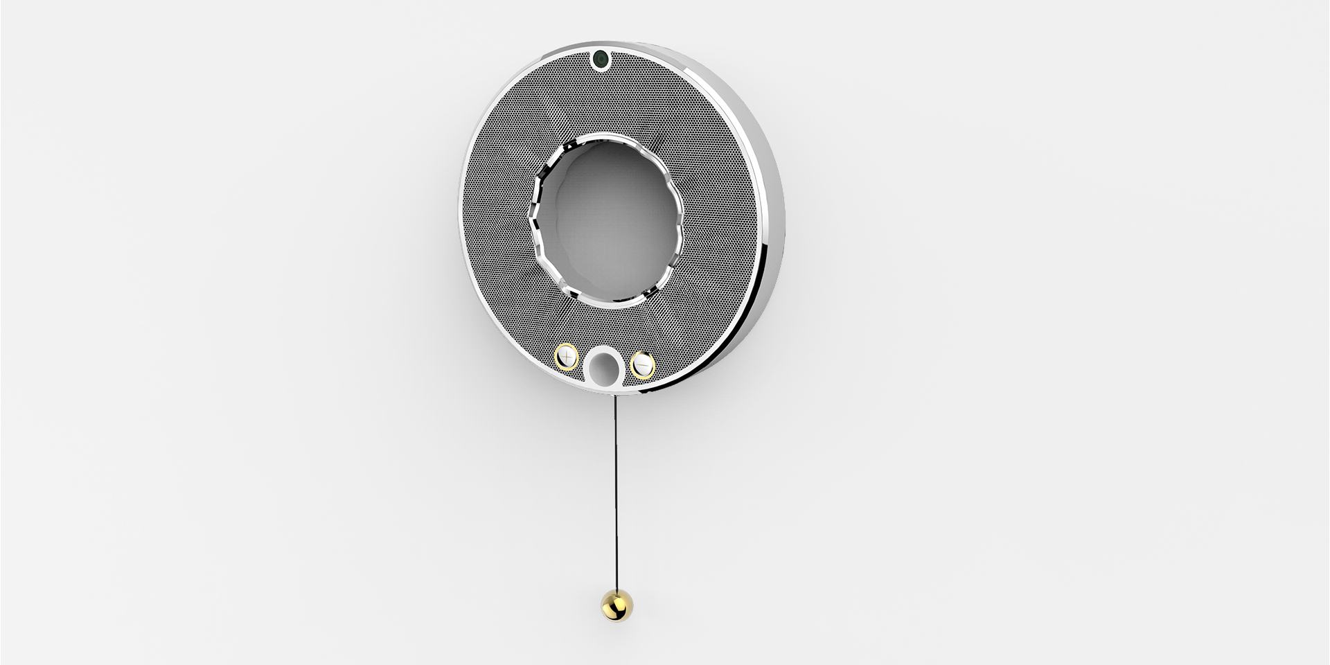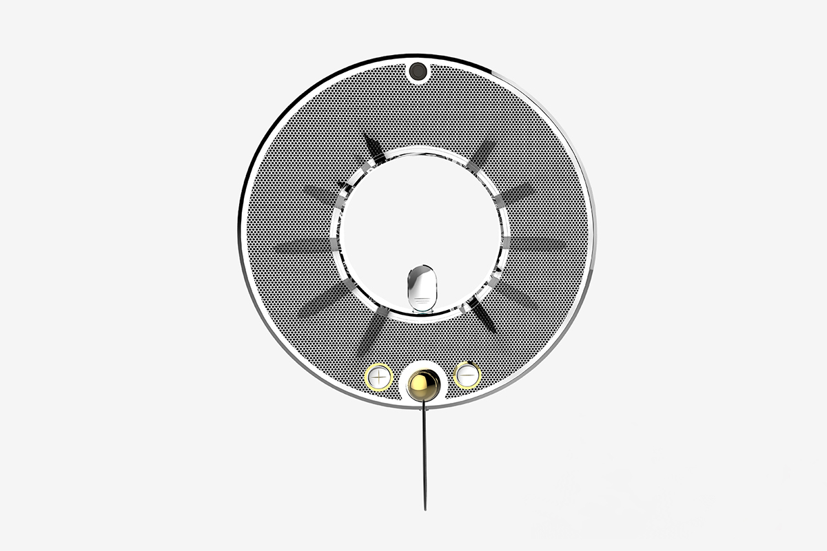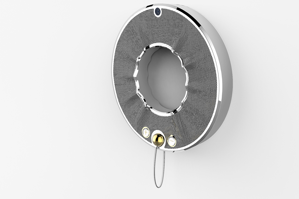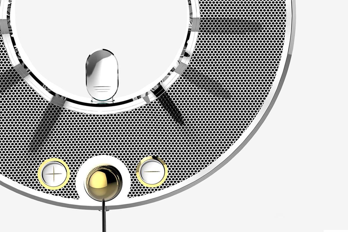 該音箱的整體外形靈感來源于古希臘的太陽之神赫利俄斯,寓意著這款音箱像擁有太陽之神的能量一樣,守衛(wèi)著家庭的歡樂與快樂。采用壁掛式的獨特設計在節(jié)省家居空間的同時又能滿足裝飾需求。開關是下方垂擺的小球,開啟方式新穎,創(chuàng)造出一種別樣交互方式,令人耳目一新。