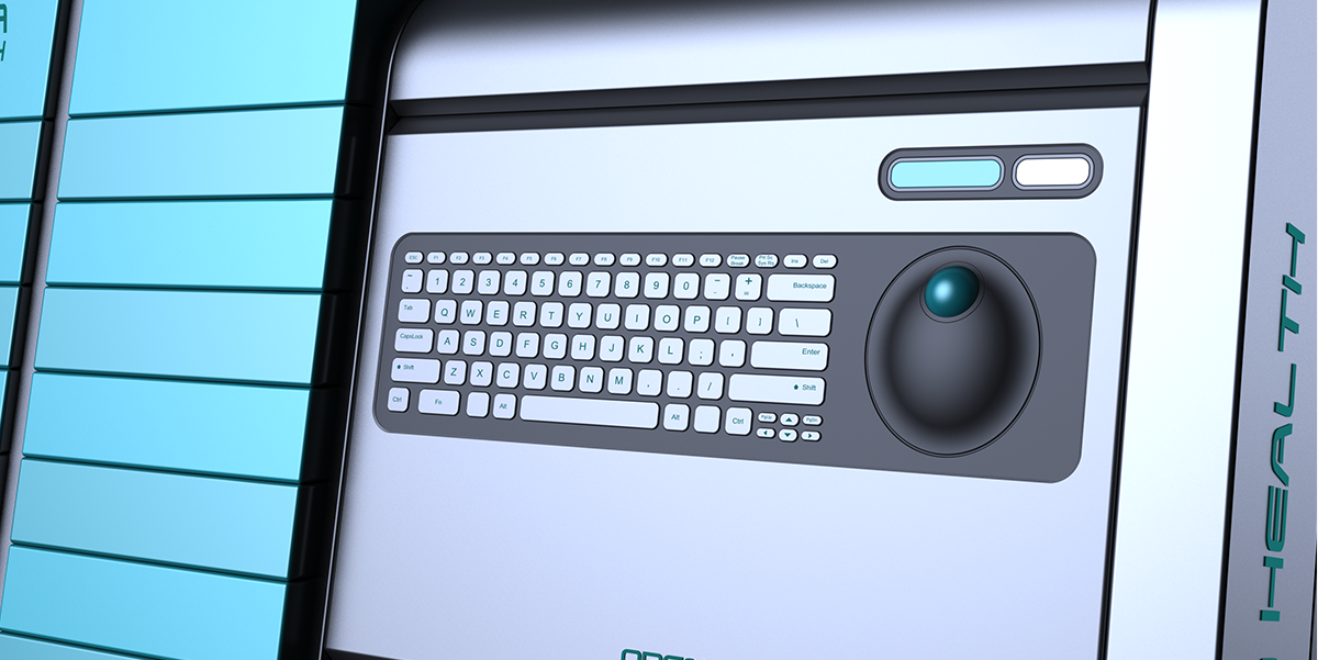 產(chǎn)品設(shè)計(jì)風(fēng)格簡(jiǎn)約、現(xiàn)代,通過(guò)幾何形體的穿插,劃分出儲(chǔ)藏區(qū)域和控制區(qū)域。右側(cè)的控制區(qū)域鍵盤臺(tái)面可以翻開,形成一個(gè)可以供醫(yī)生寫字的臺(tái)板,既人性化又不影響產(chǎn)品造型的整體美感。