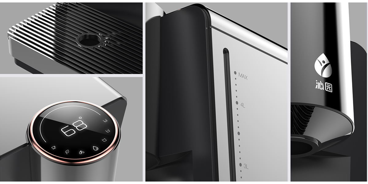 此款飲水機(jī)的設(shè)計(jì)挑戰(zhàn)來自制造成本的控制。設(shè)計(jì)師根據(jù)現(xiàn)有市場(chǎng)的人群定義,進(jìn)行風(fēng)格上的再次創(chuàng)新,設(shè)計(jì)的重心放在了頭部控制區(qū)域。其采用玫瑰金的顏色吸引女性用戶,數(shù)顯的操作方式增加了科技感,而且產(chǎn)品預(yù)設(shè)的三層溫度很好地覆蓋了不同人群對(duì)水溫的需求。
