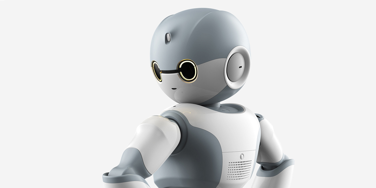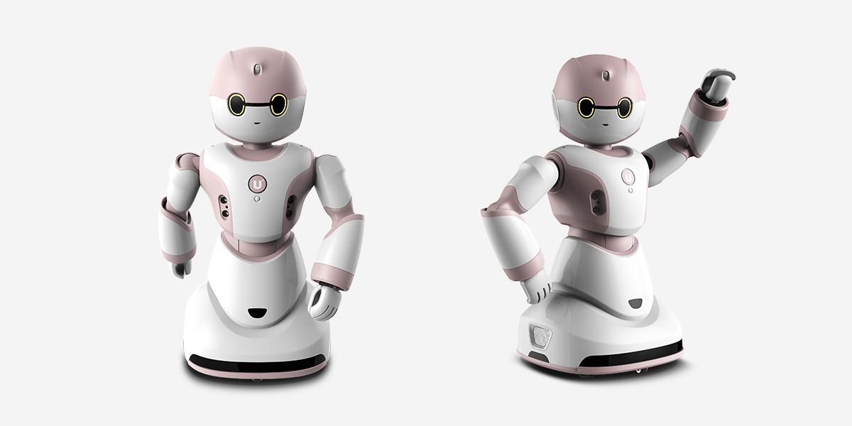 機(jī)器人擁有潔白圓潤(rùn)的主體,干凈、整潔,藍(lán)灰色的部分顯得更沉穩(wěn),富有科技感。頭部組件運(yùn)用了特殊塑料,在保證良好的外觀特征的情況下,使紅外信號(hào)能很好地透過(guò)組件。在材質(zhì)的表面處理上,U-bot 合理地采用了柔觸感表面,使它能與用戶建立更友好的溝通。