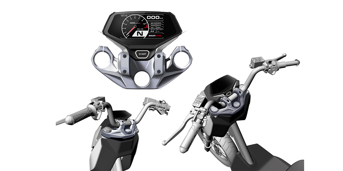 在概念設(shè)計(jì)方案的基礎(chǔ)之上,對(duì)其中的智酷極客方案進(jìn)行了深入的分析和再設(shè)計(jì)。保留車身前臉的幾何形切割方案,對(duì)車座部位進(jìn)行稍許修整,并保證面與面之間的每一個(gè)過(guò)渡都是有棱角的,從而使得車身更加鋒利并且充滿動(dòng)感。在符合人機(jī)的基礎(chǔ)上將車尾稍稍凸起,呈現(xiàn)出快速和運(yùn)動(dòng)的節(jié)奏,從而使得這款電動(dòng)車與 80 和 90 后目標(biāo)人群的需求相符合。