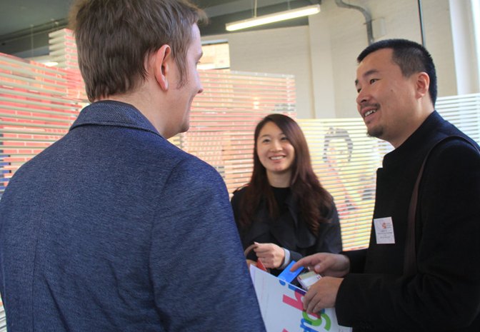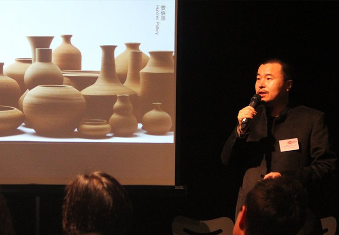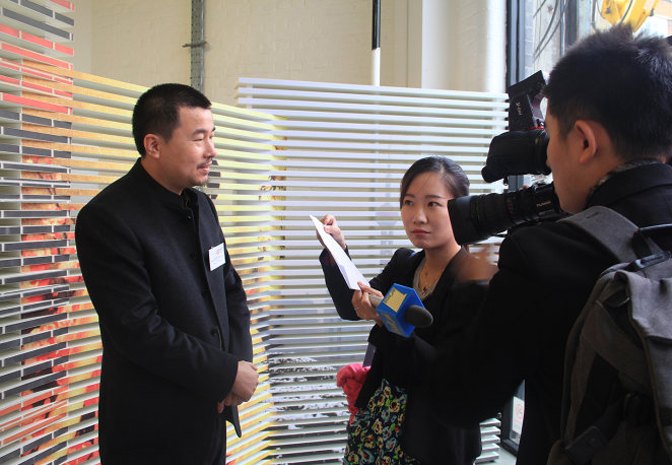 演講后丁偉先生接受第一財經(jīng)等媒體的采訪,并跟英國設計師展開深入交流。