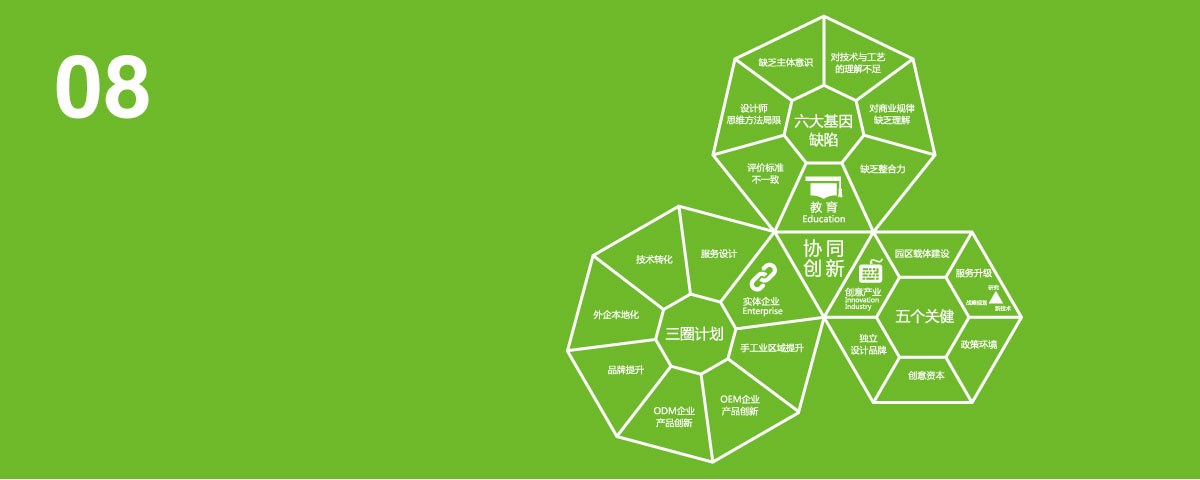 創(chuàng)意產(chǎn)業(yè)要成功,與五個關(guān)鍵要素相關(guān):需要優(yōu)良的政策環(huán)境和園區(qū)載體建設(shè);需要將傳統(tǒng)的設(shè)計服務(wù)升級;將創(chuàng)意資本化,或創(chuàng)立獨立設(shè)計品牌。